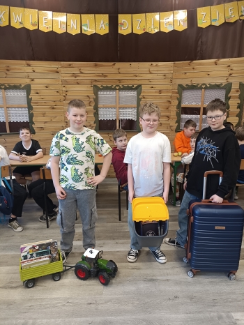 Oczywiście udowodnili, że wyobraźnia nie zna granic. Zeszyty i podręczniki zostały spakowane w wózki dziecięce, kosze na śmieci, walizki, poszewki od poduszek, kosze sklepowe, a nawet suszarki na pranie czy odkurzacze. Liczyła się pomysłowość i spryt, a tego naszym uczniom nie brakuje.