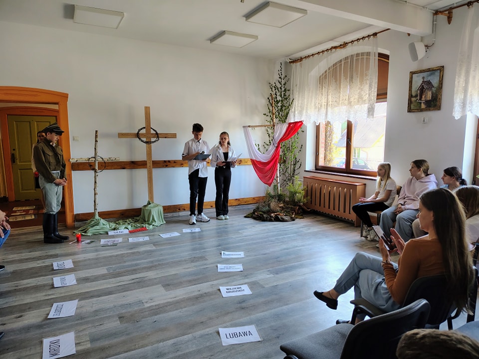 30 kwietnia w naszej szkole odbyły się warsztaty historyczne zaprezentowane przez uczniów klas ósmych Publicznej Szkoły Podstawowej w Paczewie pod kierunkiem pani Grażyny Stolc. Tematem warsztatów była tragedia II wojny światowej widziana przez pryzmat doświadczeń wojennych wybranych mieszkańców południowej części powiatu starogardzkiego.