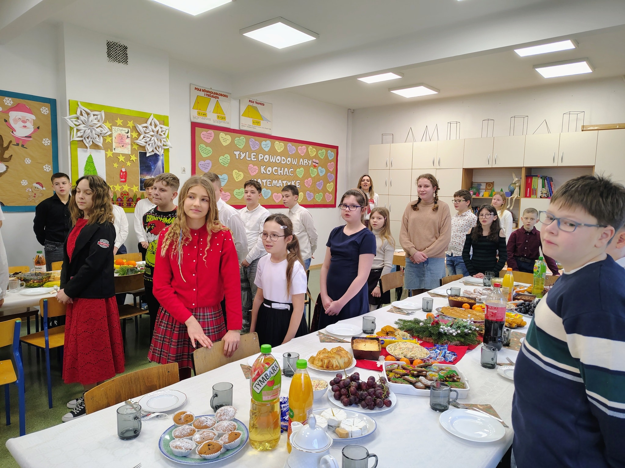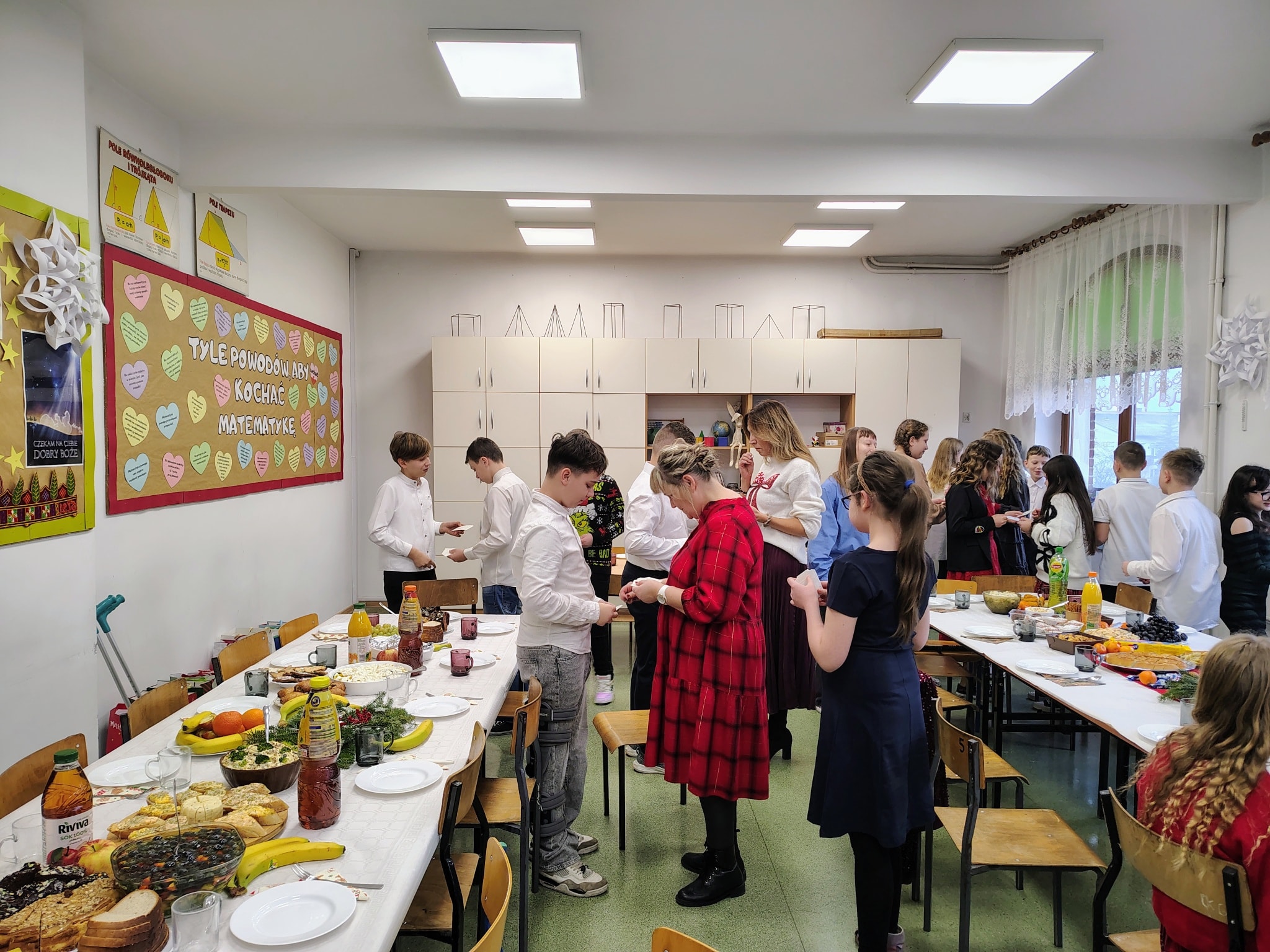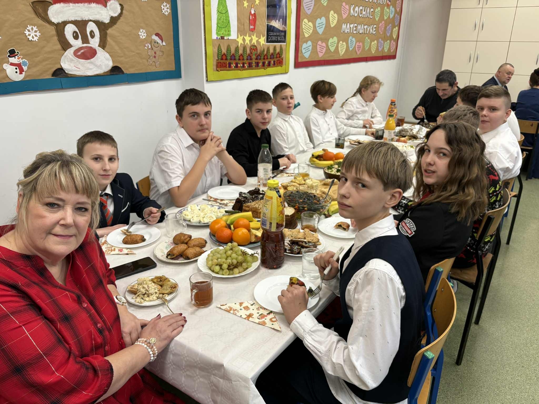 Dziś odbyła się wyjątkowa Wigilia szkolna. Po odczytaniu Pisma Świętego podzieliliśmy się opłatkiem, wspólnie zaśpiewaliśmy kolędy, a następnie zasiedliśmy do świątecznego poczęstunku.