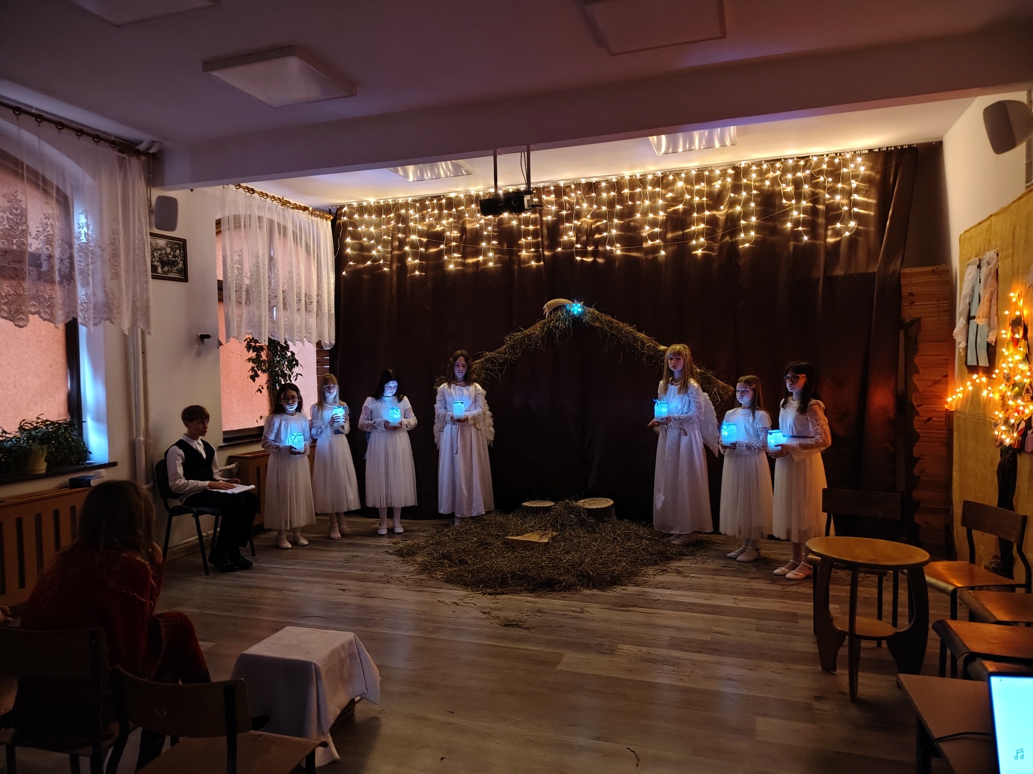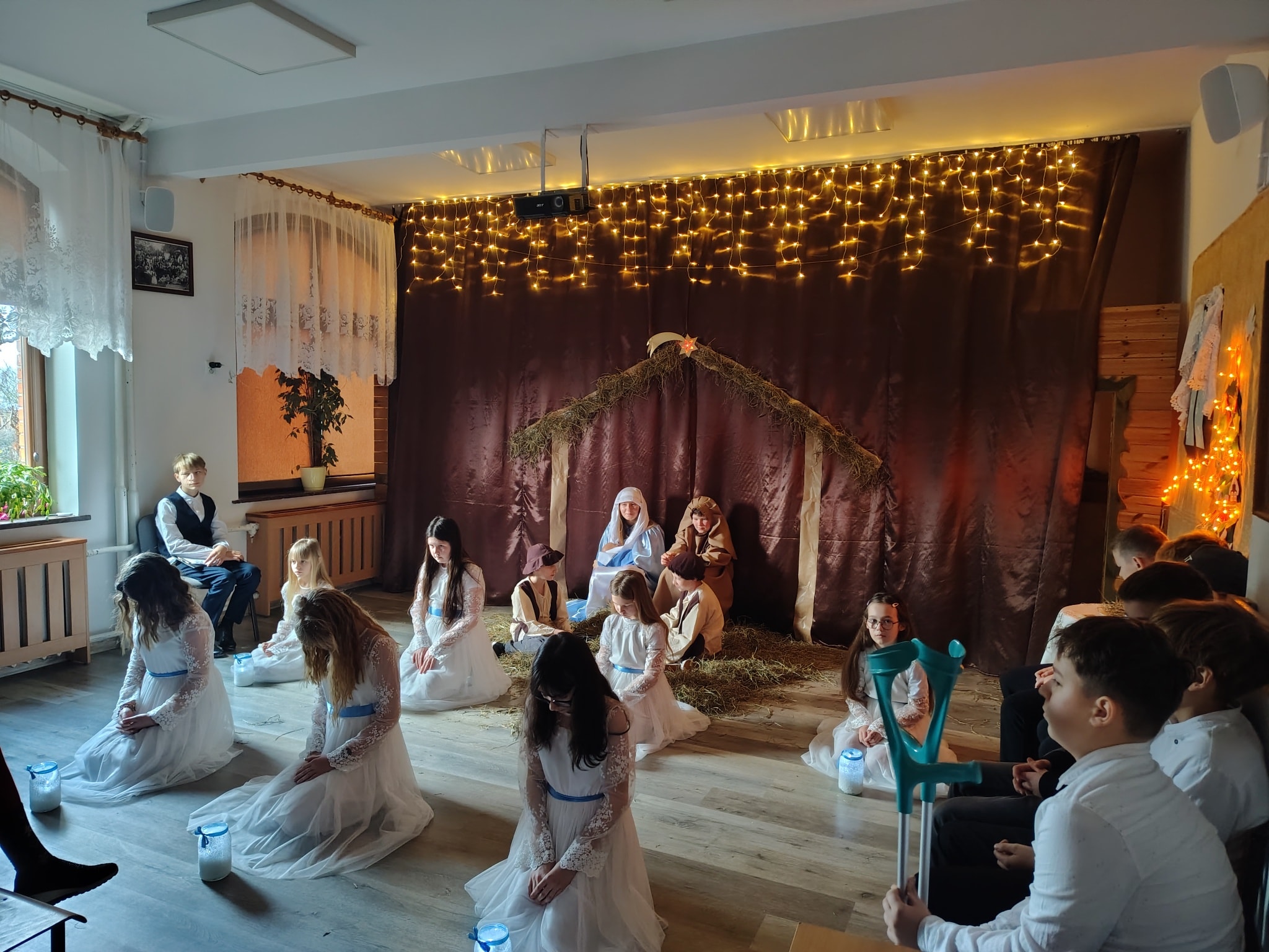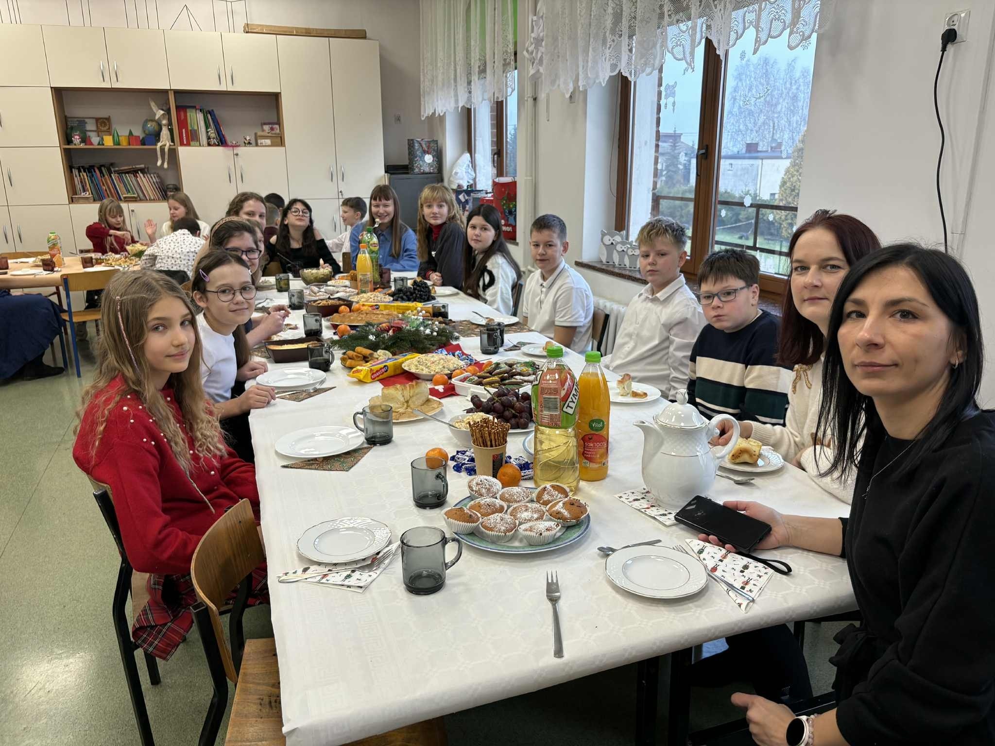 Dziś odbyła się wyjątkowa Wigilia szkolna. Po odczytaniu Pisma Świętego podzieliliśmy się opłatkiem, wspólnie zaśpiewaliśmy kolędy, a następnie zasiedliśmy do świątecznego poczęstunku.