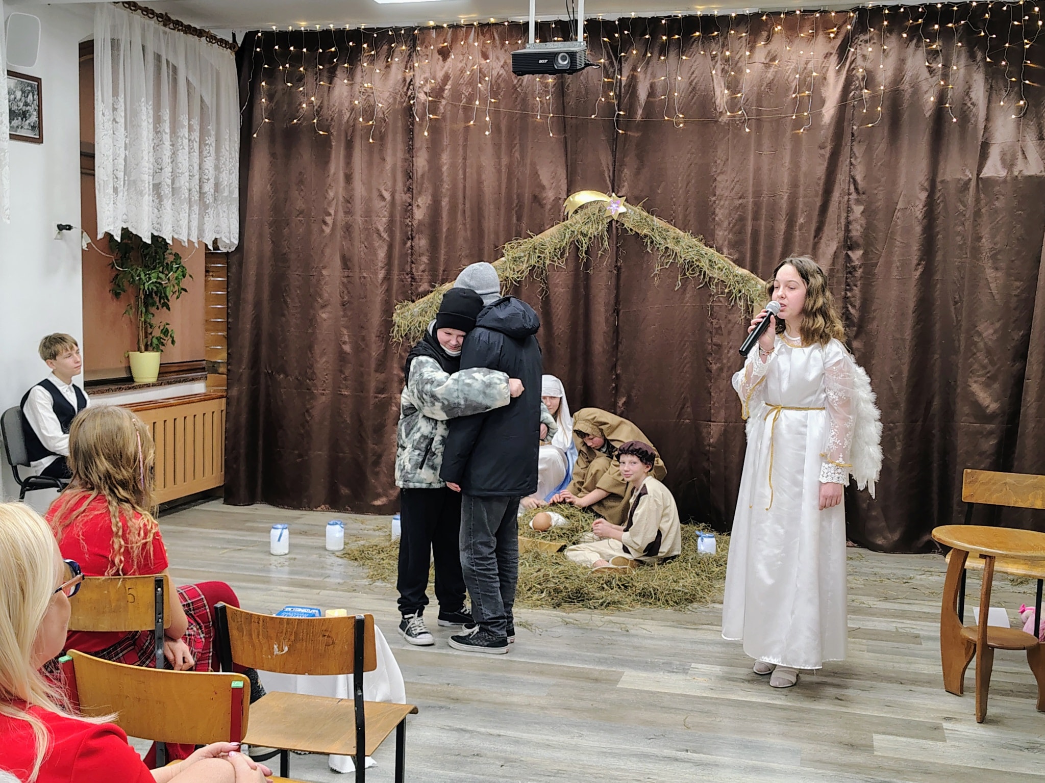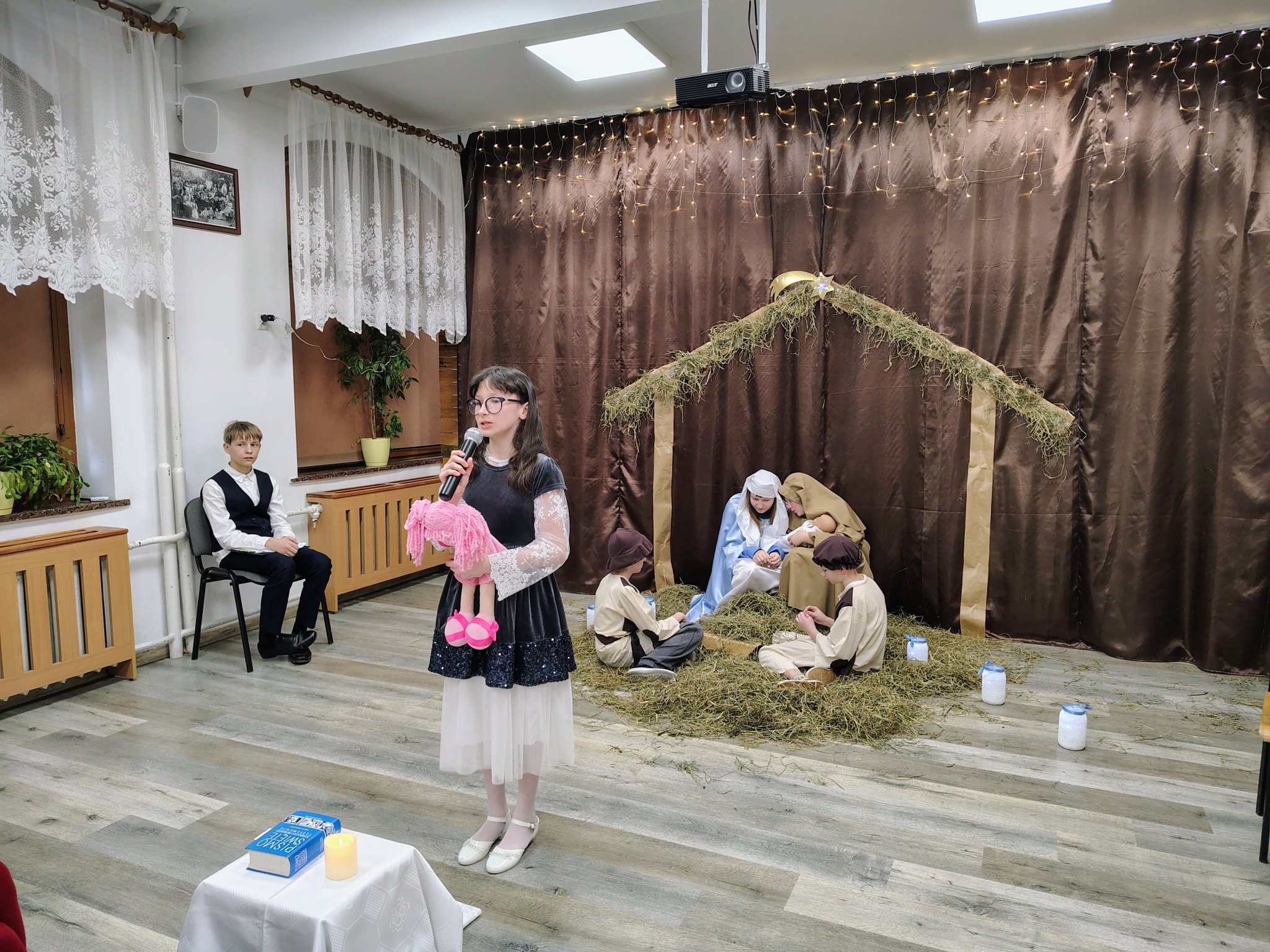 Następnie, wraz z zaproszonymi gośćmi, obejrzeliśmy piękne przedstawienie bożonarodzeniowe pt. „A nadzieja znów wstąpi w nas”, przygotowane przez kółko teatralne pod opieką pani Lidii Sikory. Było naprawdę wzruszająco i wyjątkowo.