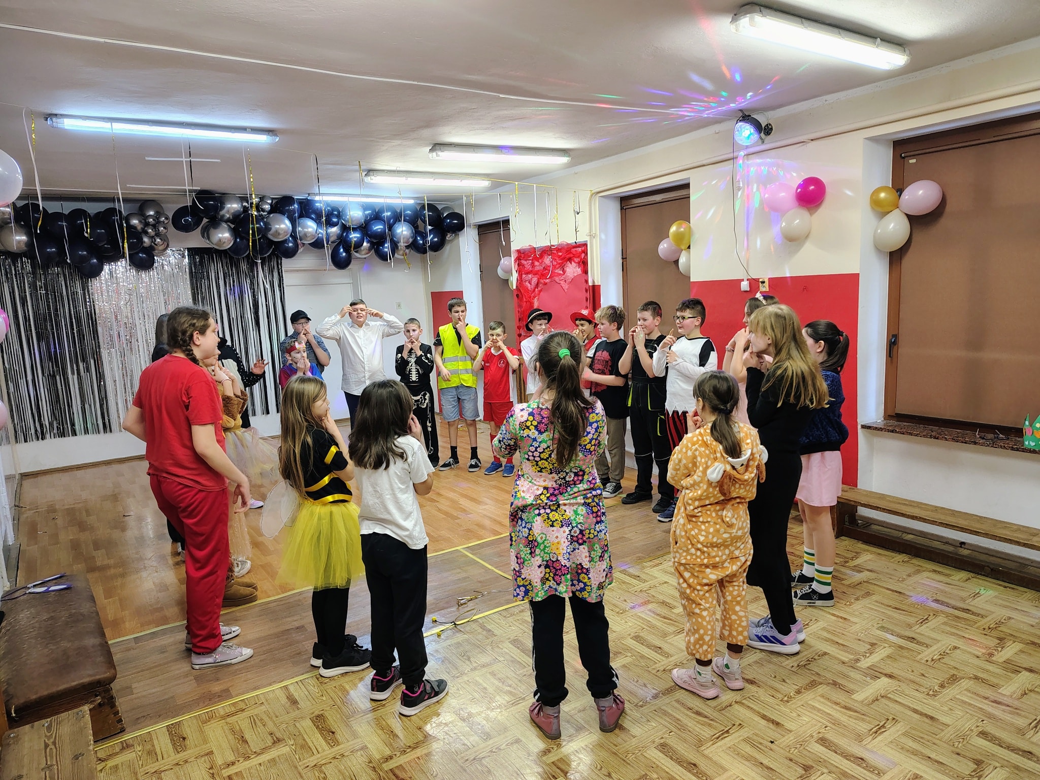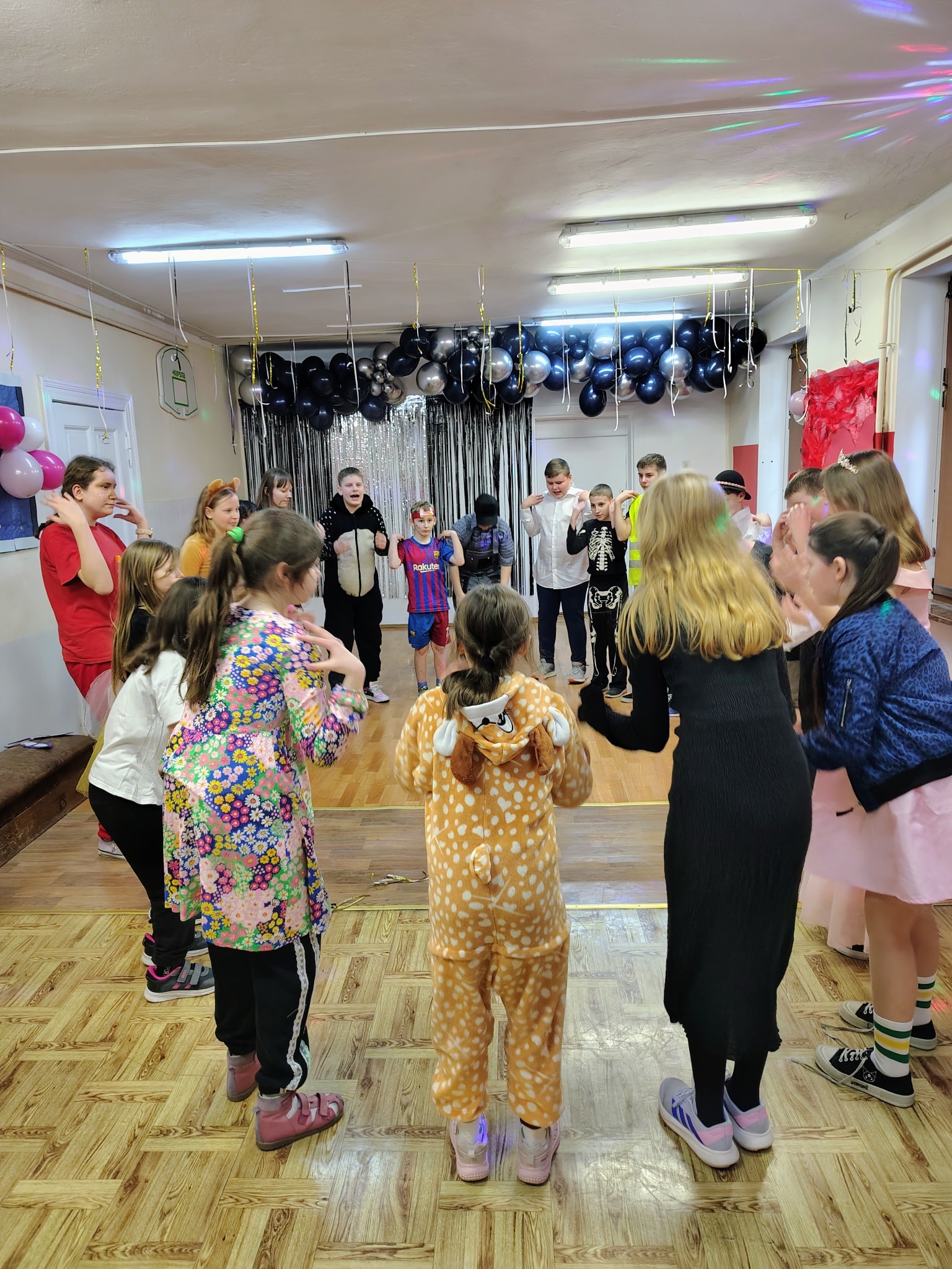 Dzisiejszy dzień upłynął w naszej szkole pod znakiem radości, muzyki i kolorowych przebrań. Uczniowie zaprezentowali niezwykle pomysłowe i kreatywne stroje, a podczas wspólnych tańców, gier i zabaw nie brakowało uśmiechów Wspaniałe atrakcje i zabawy przygotował Samorząd Uczniowski, dzięki czemu każdy mógł aktywnie i radośnie spędzić ten czas. Na wszystkich czekał także smaczny poczęstunek. Panie z Koła Gospodyń Wiejskich z Mirotek wspólnie z Panią Sołtys przygotowały pyszne gofry, które znikały w mgnieniu oka. Do tego serwowana była orzeźwiająca lemoniada.